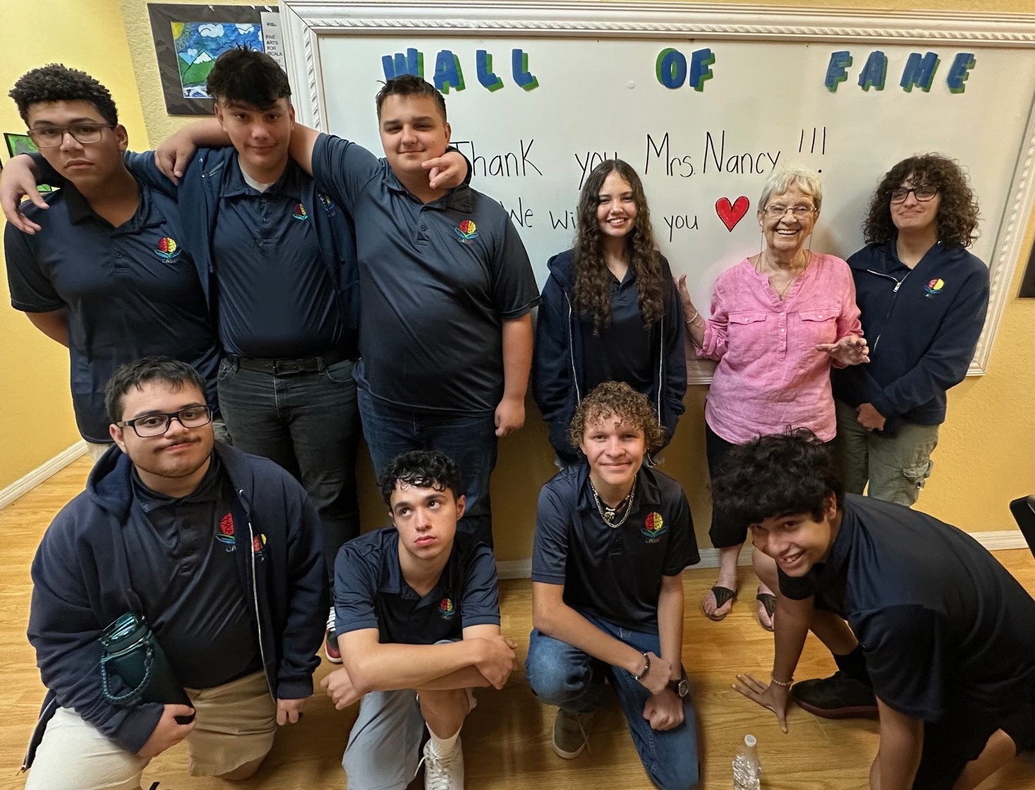 Mrs. Nancy with high school students